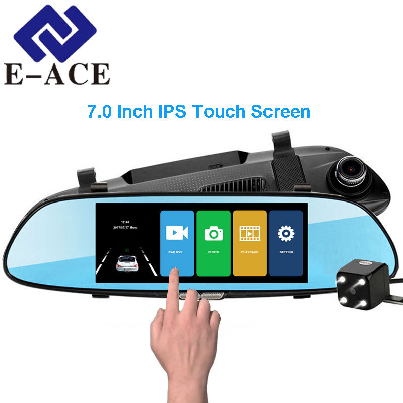 E-ACE 7.0 Inch IPS Touch Screen Car DVR Full HD 1080P Video Recorder Dual Dash Camera Mirror Rear View Auto Registrator Dashcam